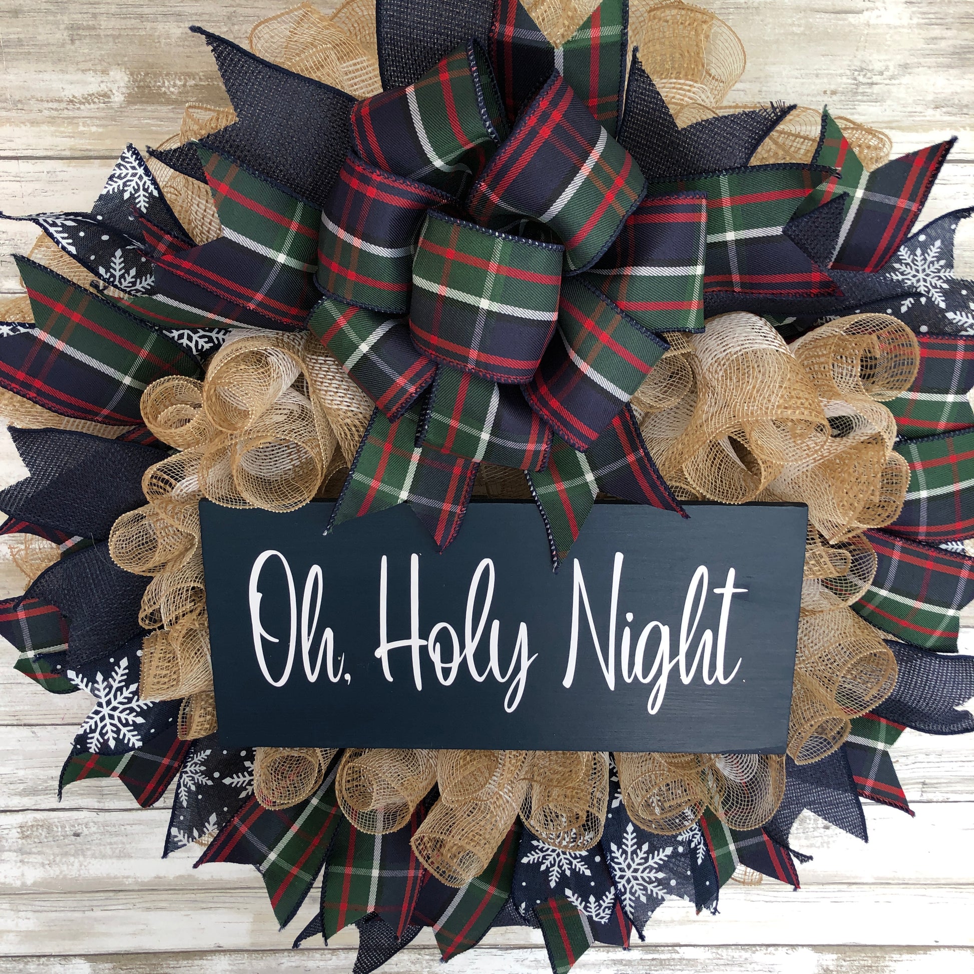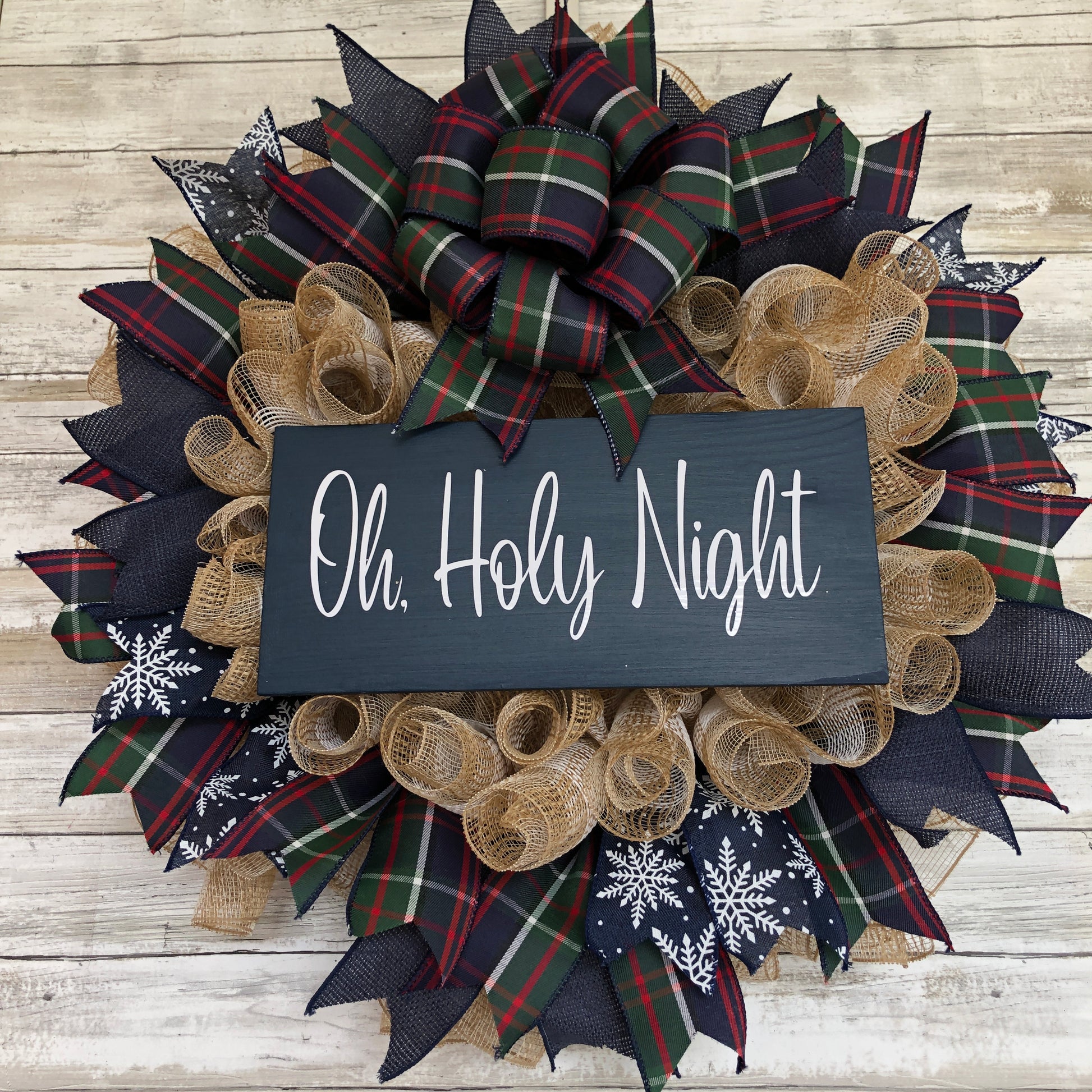 Oh, Holy Night Christmas Holiday Door Wreath, Handmade Door Wreath For Christmas Season