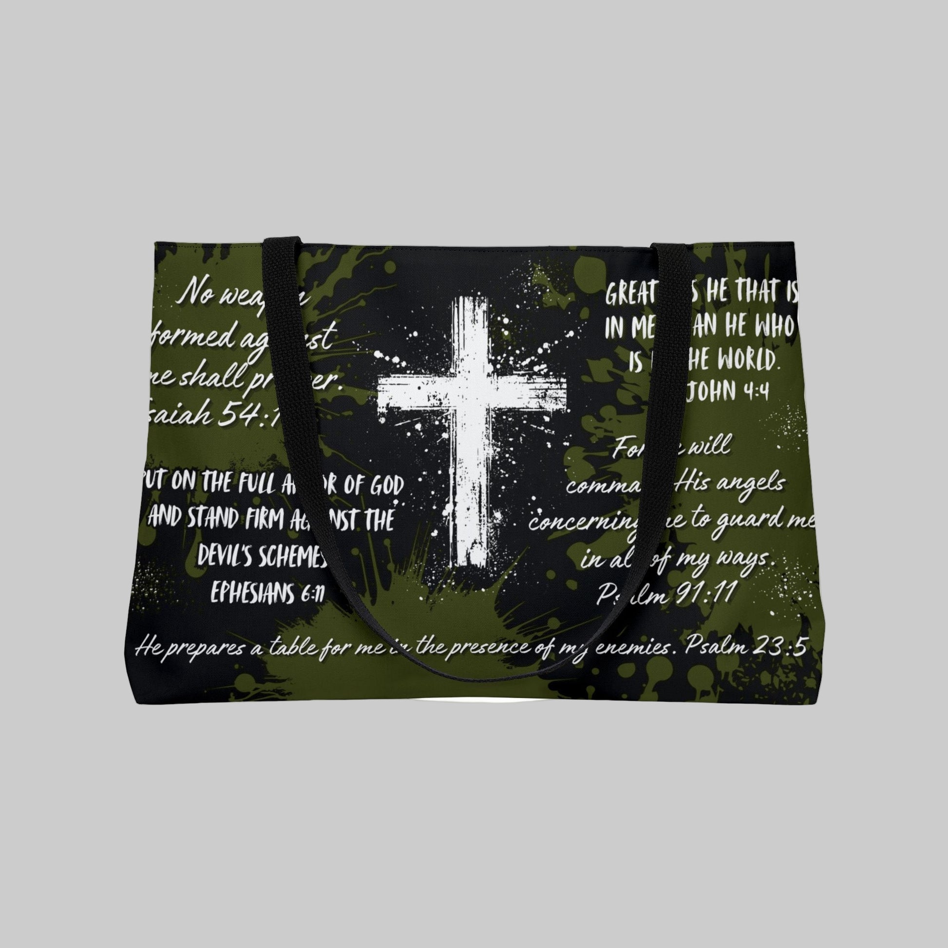This Christian Weekender Tote Bag features a powerful Bible verse design that provides strength and inspiration. Perfect for those who want to carry their faith with them wherever they go. Ideal for Christians looking for a stylish and practical accessory for trips, weekend getaways, or everyday use. Great for religious holidays, church events, and as a gift for believers.