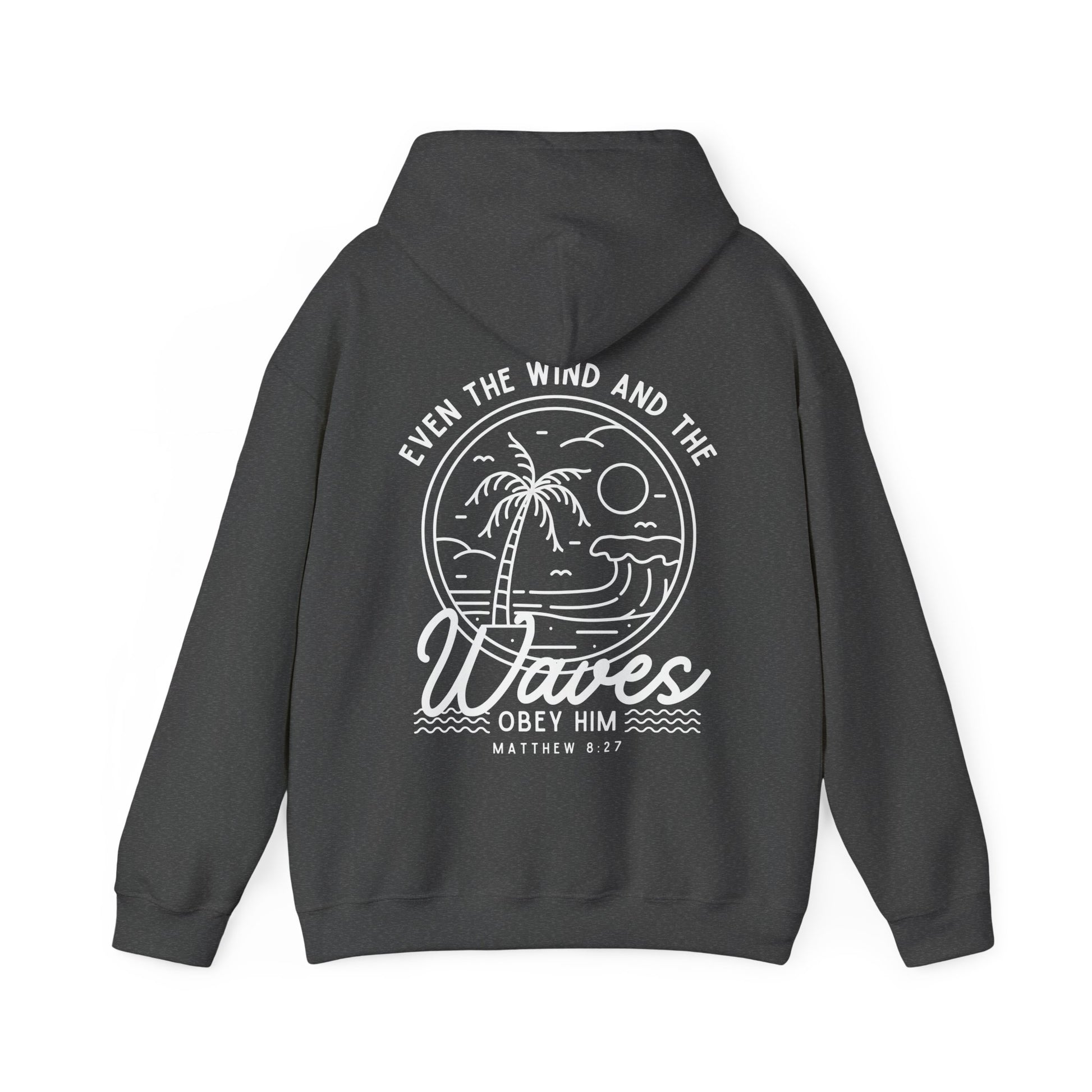 'Even The Wind And The Waves Obey Him' Bible Verse Unisex Hoodie | Beach-Themed Christian Hooded Sweatshirt, Faith-Based Apparel