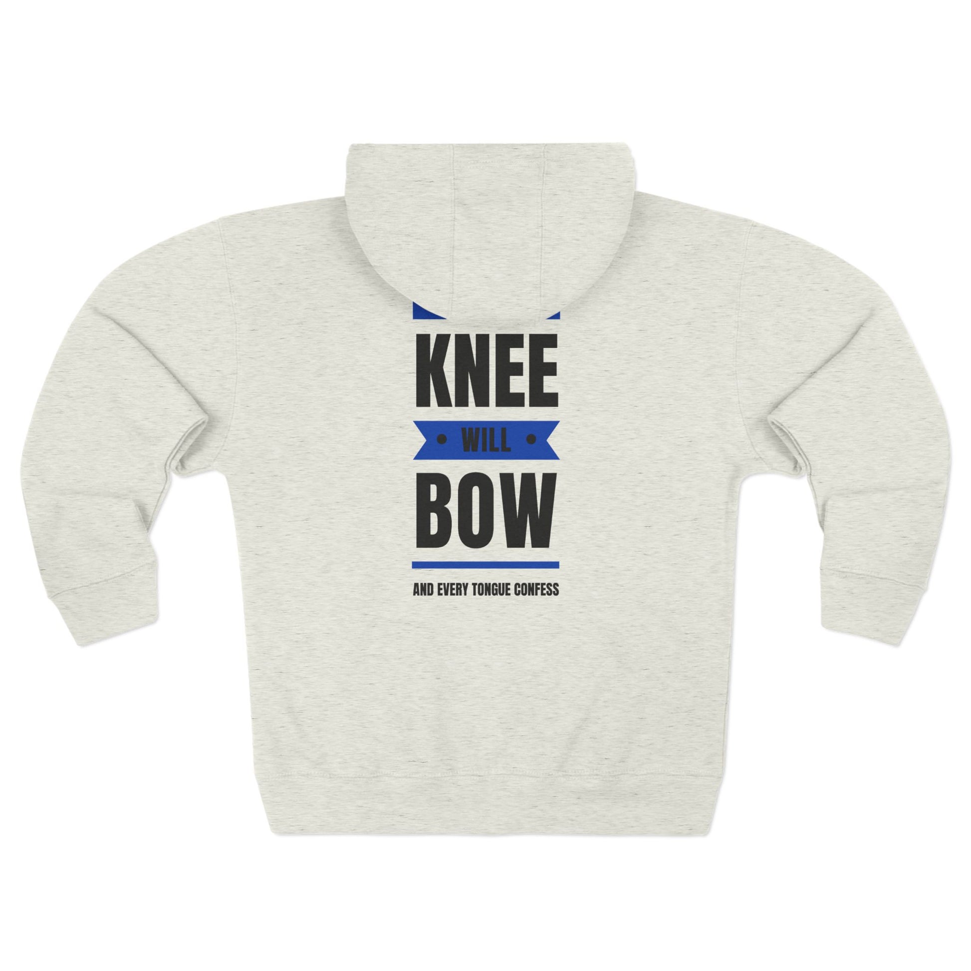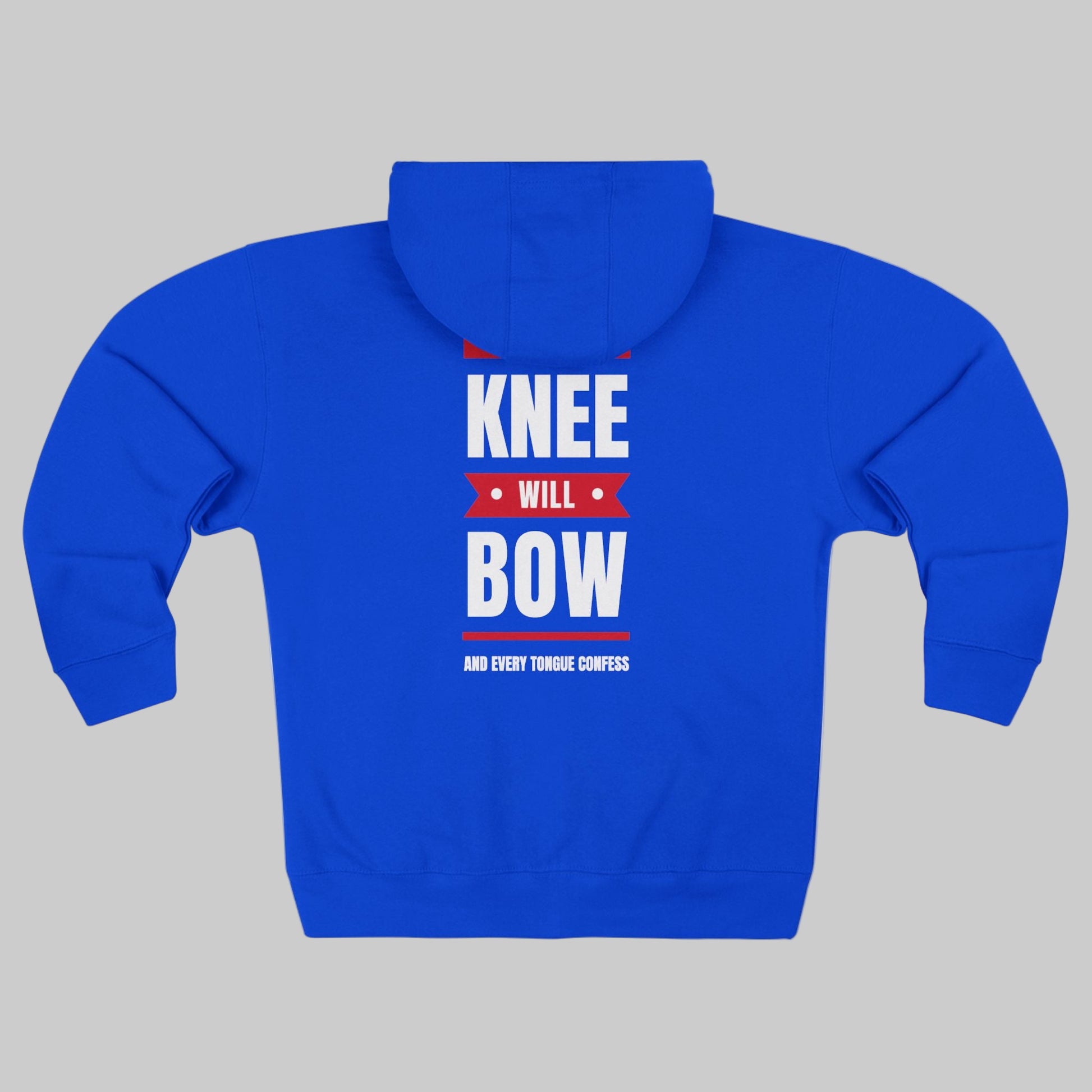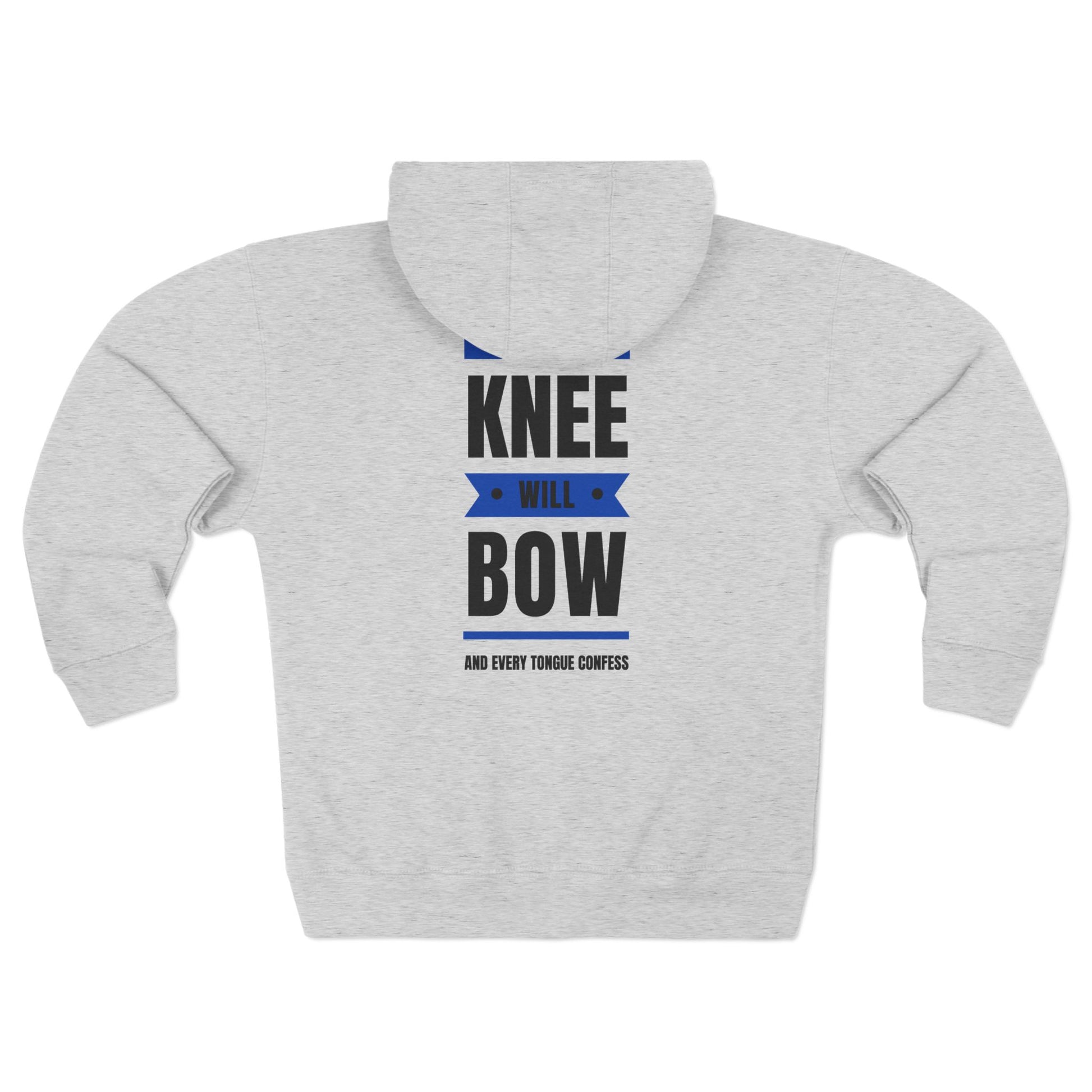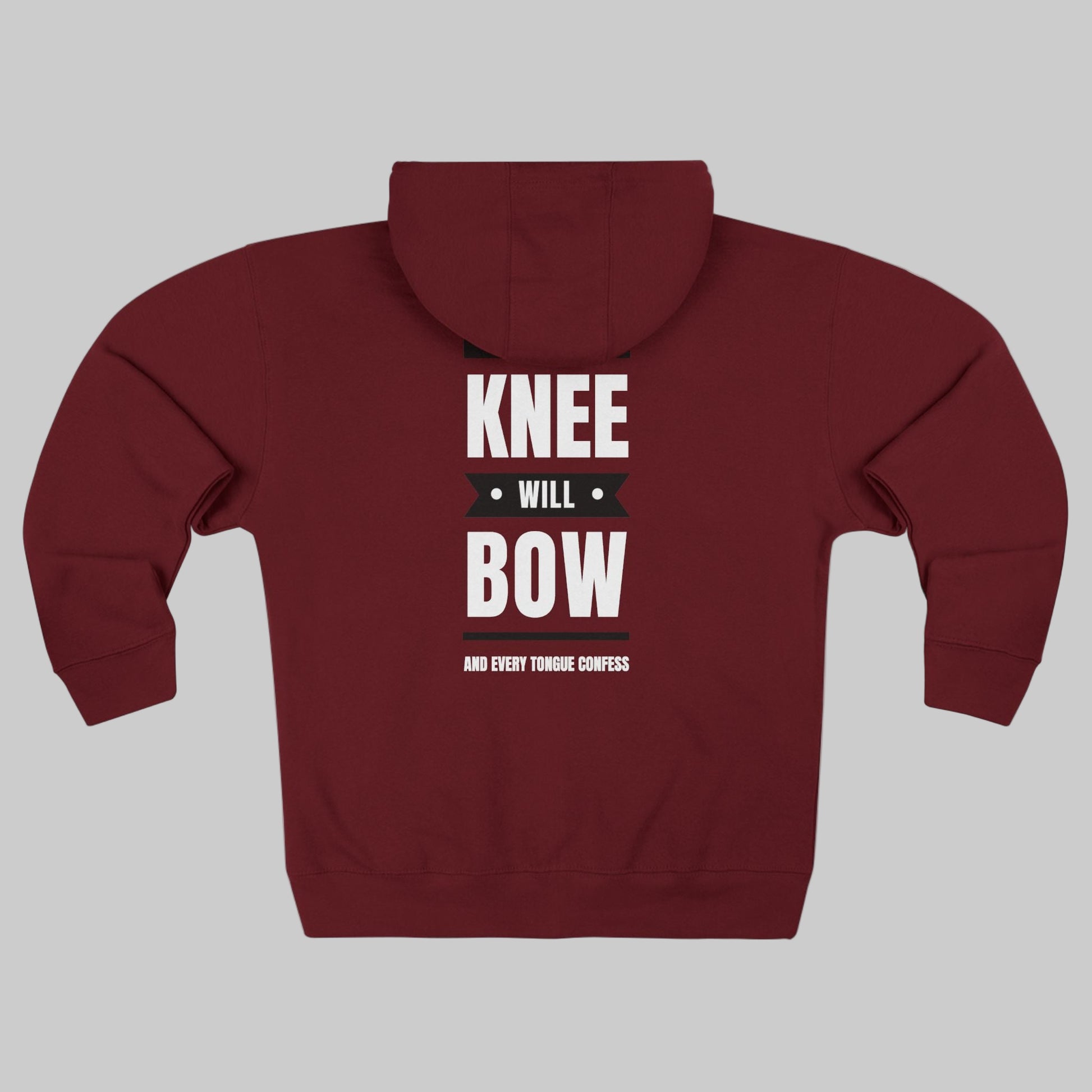 Every Knee Will Bow And Every Tongue Confess Jesus Is Lord Faith-Inspired Full Zip Hoodie | Inspirational Apparel, Christian Gift