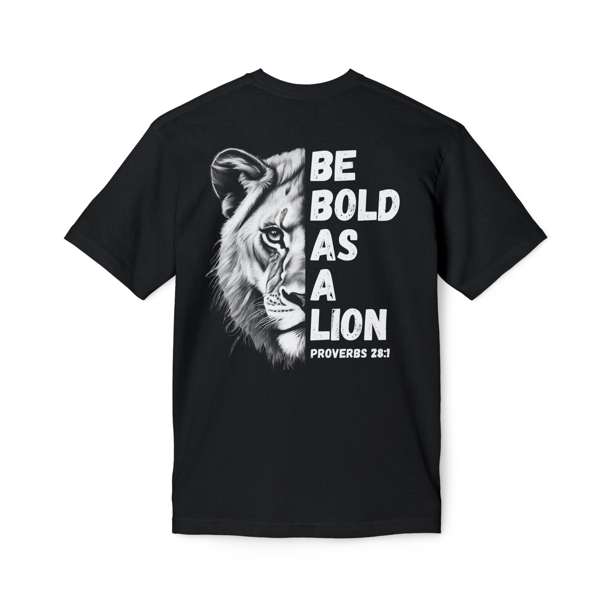 Made In The USA - Bold As A Lion Christian T-Shirt, Inspirational Tee, Faith Apparel, Proverbs 28:1