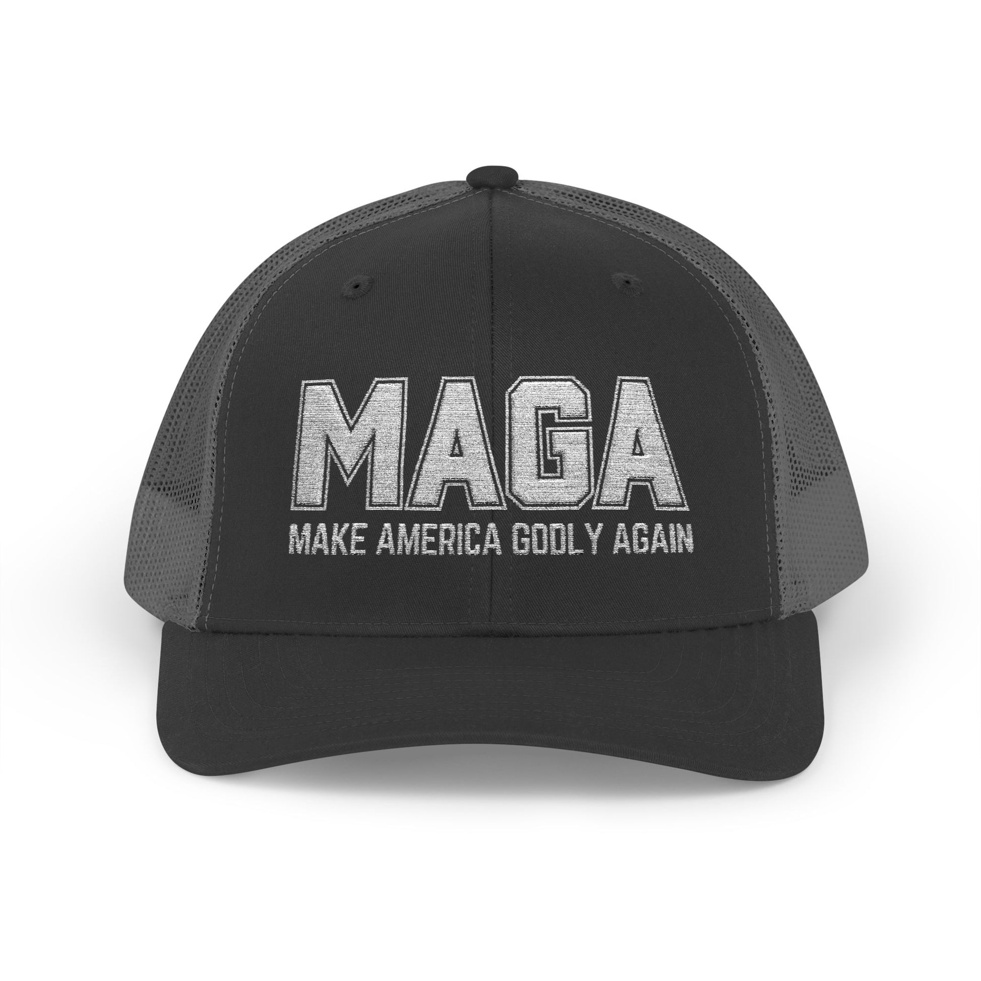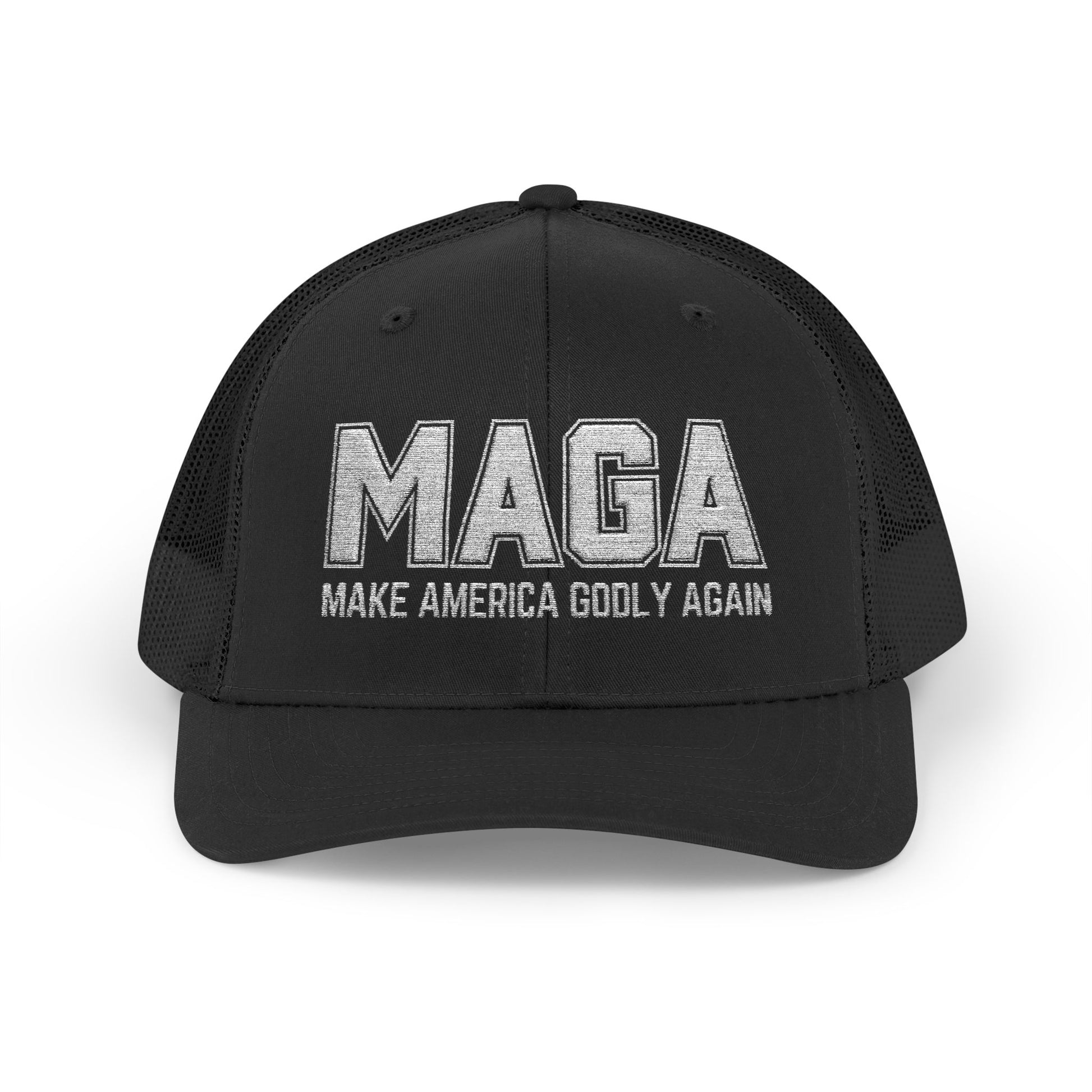 Express your commitment to faith and country with the Make America GODLY Again Snapback Trucker Cap. Featuring durable construction, breathable mesh panels, and an adjustable snapback, this cap offers both comfort and a custom fit. Perfect for everyday wear or special events, it boldly showcases your belief in a higher purpose for America while keeping you stylish and cool. Make a strong, inspiring statement wherever you go.