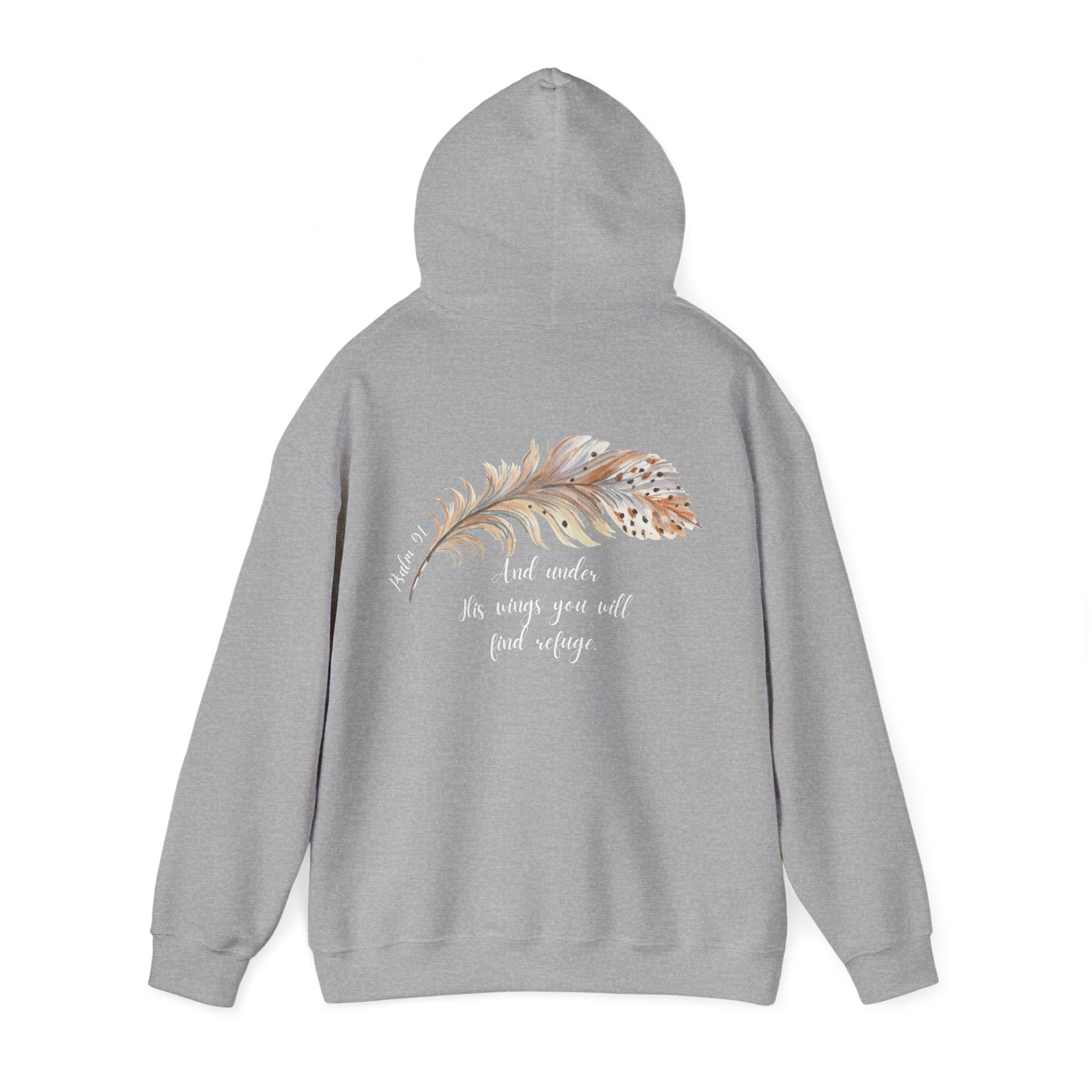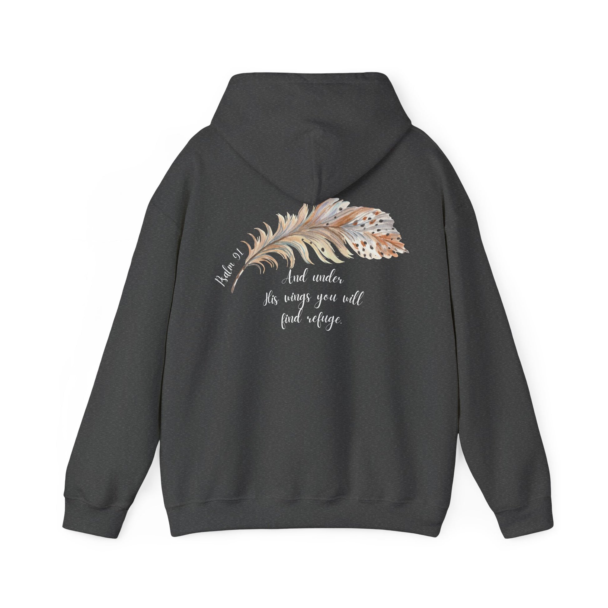 Psalm 91:4 Under His Wings You Will Find Refuge Heavyweight Sweatshirt, Feather Design For Women, Beautiful Christian Apparel