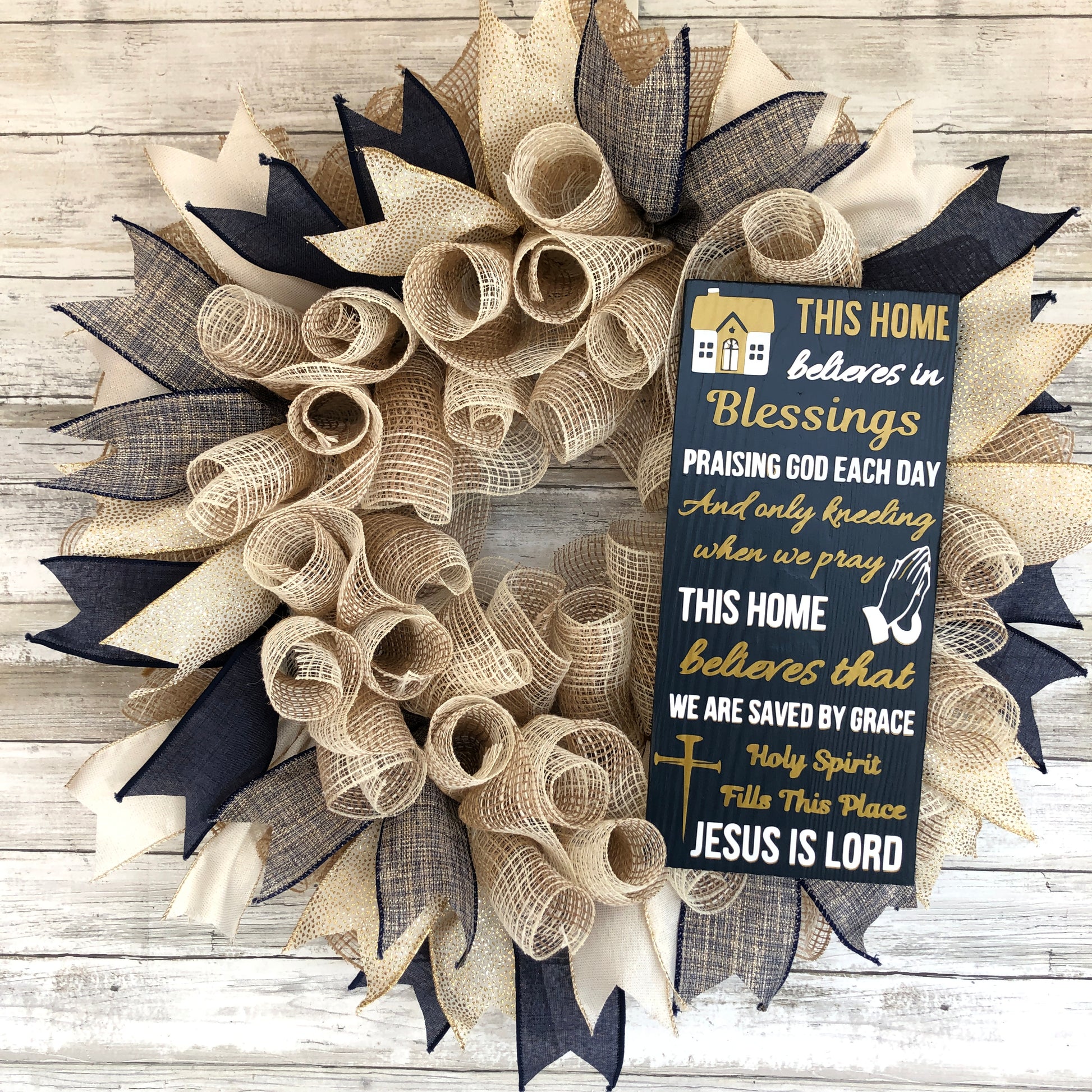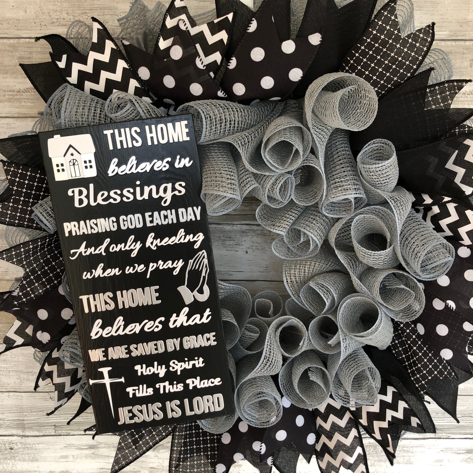 Indulge in the cozy and welcoming atmosphere of your home with our This Home Believes In Sign and Handmade Wreath. Choose from our multiple color schemes to match your aesthetic. Spread the message of hope and positivity with the This Home Believes In Door Wreath and Sign.